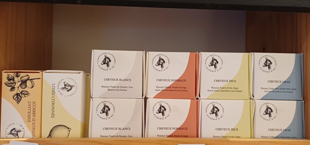 De nouveaux produits sont en vente dans notre boutique « Mains libres » à Lautrec comme les shampoings solides pour les cheveux blancs, normaux, secs et gras et le petit dernier le lait démaquillant enrichi à 15% de lait d’ânesse.